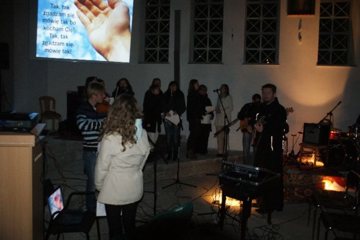 W piątkowy wieczór, 26 października, Kościół przy ul. Libelta w Pile wypełnił się prawie dwustuosobową rzeszą ludzi – przede wszystkim młodych, którzy zgromadzili się na wieczorze UWIELBIENIA JEZUSA. Przy wejściu do świątyni każdy otrzymał małą świeczkę, którą następnie złożył przy ołtarzu, łącząc ją z osobistą intencją, z jaką przybył na to szczególne nabożeństwo.